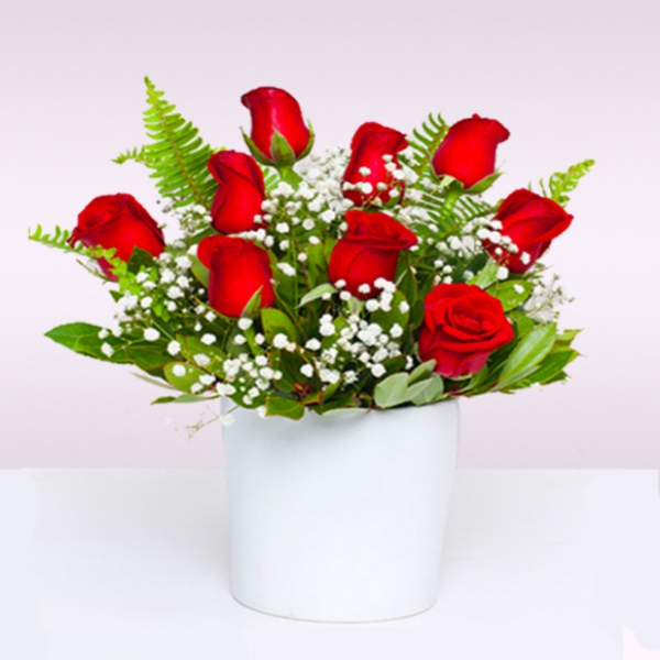 Ürün Kodu: DS739 Adet Kırmızı Gül Seramik Vazo Cipso Ve Yeşillikler