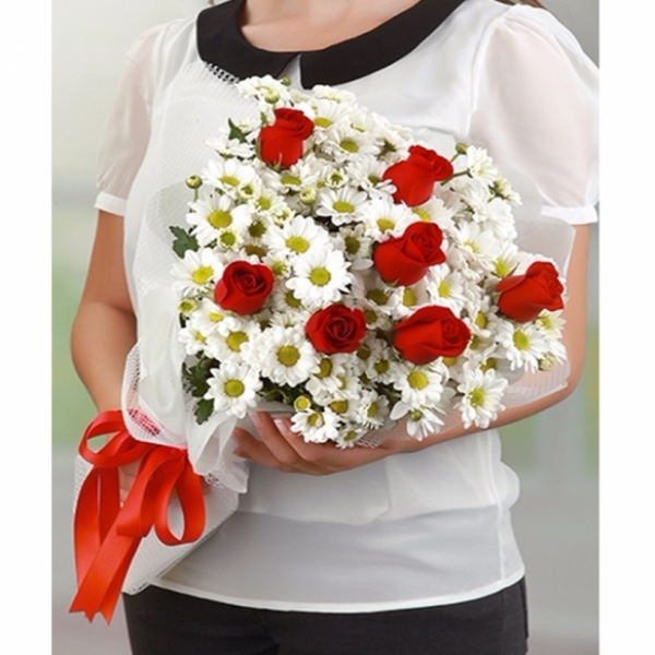 Ürün Kodu: DS967 Adet Kırmızı Gül,Beyaz Kasımpatılar