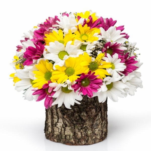 Ürün Kodu: DS102Doğal Ahşap Kütükte Renkli Papatya aranjmanı ile hem şık bir görüntü oluşturabilir hem de papatyaları doğal bir görünümle sunma şansı yakalayabilirsiniz