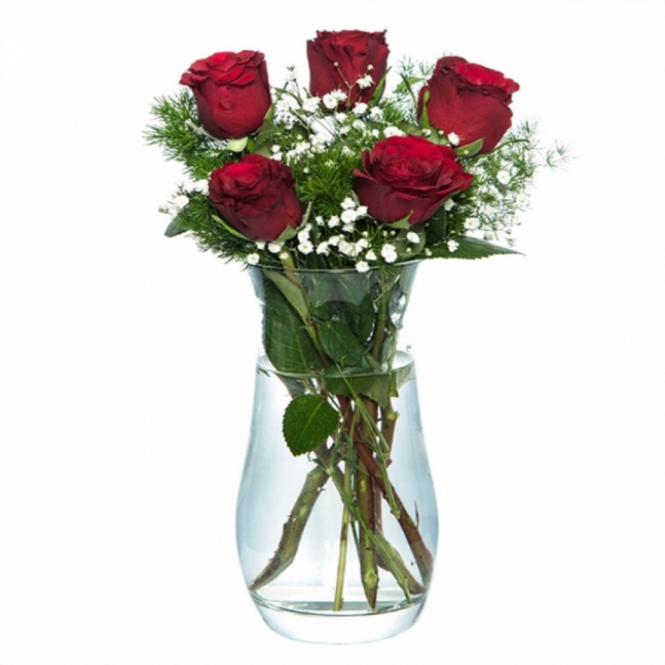 Ürün Kodu: DS1425 Adet Yaklaşık Ürün Boyutu: 30cm Cam vazoda beyaz cipsolarla süslenmiş 5 adet kırmızı gül. Kırmızı gül aşkı simgeler. Aşk deyince akla gelen ilk şey kırmızı güller, şimdi sizin büyük aşkınızı, biricik sevgilinize anlatmaya geliyor. Sevgiliye Özel Kırmızı Güller güzelliği, sevgilinizin kalbini çalacak.