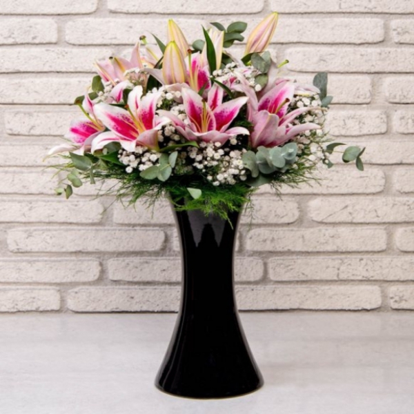 Ürün Kodu: DS93Pembe lilyumlar zarafetin en güzel sembolü olduğu gibi, aşık olduğunuz kişiye karşı olan güveninizi de göstermenize yardımcı olur. Siz de zarafeti ile sizi büyüleyen ve varlığı ile sizi her zaman çok mutlu eden sevgilinize güzel bir sürpriz yapmak isterseniz, ona mis kokulu pembe lilyumlardan oluşan şık bir aranjman hediye edebilir ve aranızdaki bağı kuvvetlendirebilirsiniz. Zarif Kuğu Pembe Lilyum Aranjmanı: Siyah şık bir vazo içinde 16 adet pembe lilyum ile hazırlanmıştır.